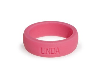 Personalized Name Or Date Women Silicone Ring Custom Fitness Etsy Uk In 2022 Rubber Wedding Band Silicone Wedding Band Silicone Wedding Band Mens